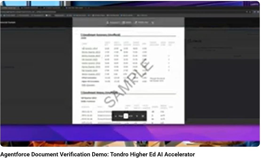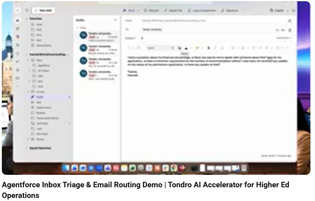 As a leader in Higher Ed digital transformation, Tondro delivers high-velocity integration frameworks that turn the Salesforce ecosystem into a true operational engine. Whether you’re looking to clear a document backlog, secure your admissions inbox, or provide 24/7 student navigation, our Agentforce accelerators provide a predictable, secure, and fast-to-deploy path forward.