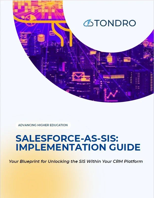 Get the 50-page operational blueprint Tondro pioneered to replace high-risk legacy SIS (CAMS, Anthology, Jenzabar, PowerCampus) with a modular Salesforce architecture.